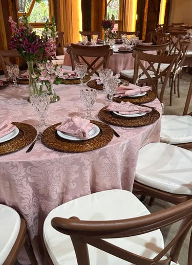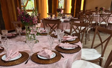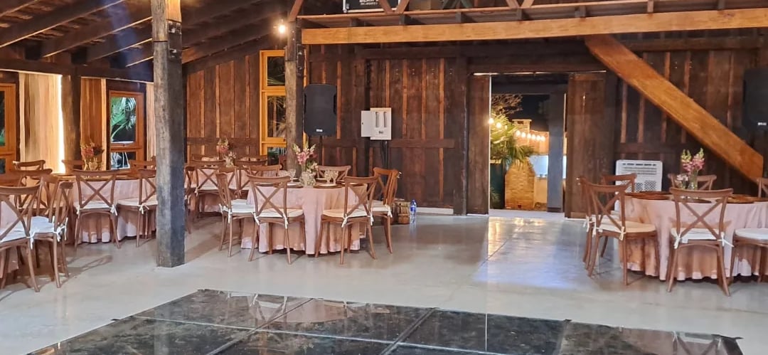 Aqui, seu evento ganha vida em um cenário sofisticado, onde o conforto encontra o estilo campestre em perfeita harmonia.